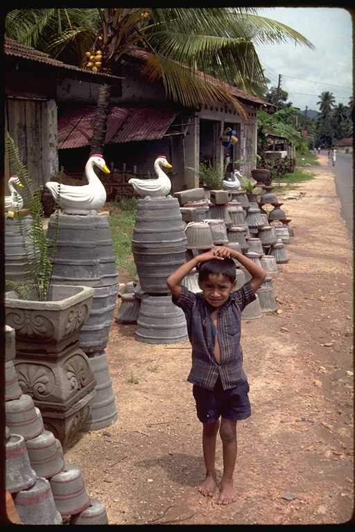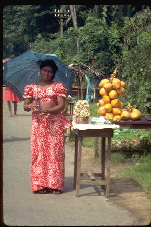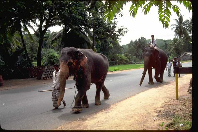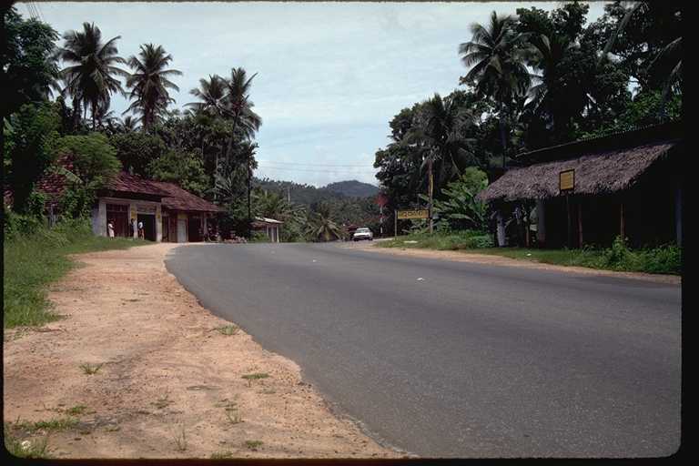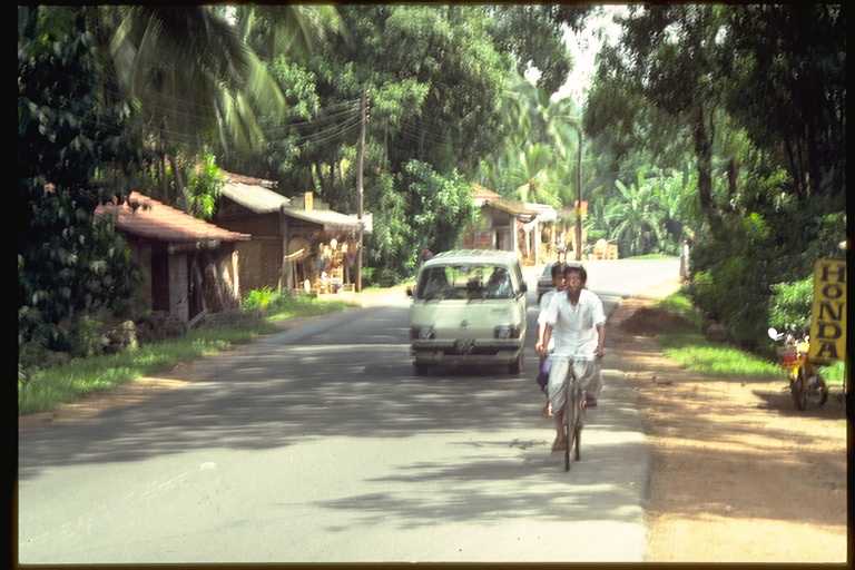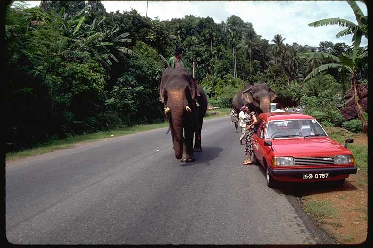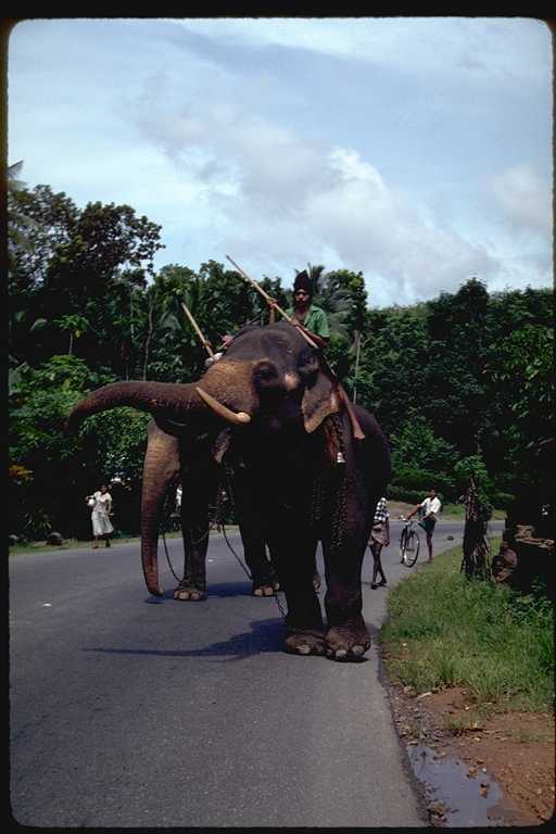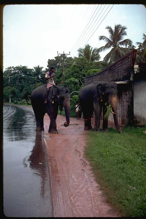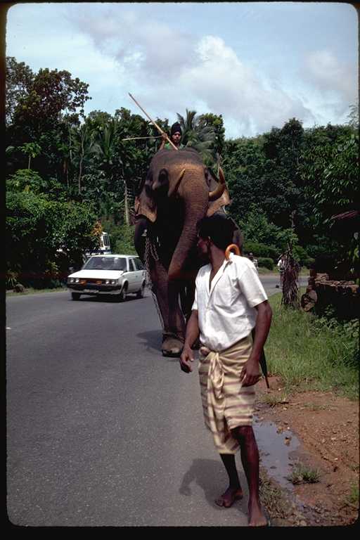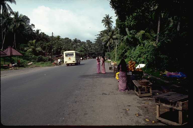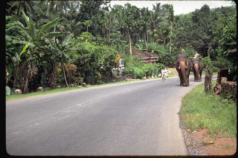二回にわたるスリ・ランカ旅行は1991年のことだった。このときの記録は旅行日誌第3巻にくわしく書いたが、コロンボからキャンデイまでの「キャンデイ街道」がおもしろかった。たとえていえばスリ・ランカの東京から京都まで、といった感じであろうか。国内最大の幹線道路である。この写真は6月に撮影したもの。自動車とゾウの混合交通もめずらしく、また沿道でカシューナツを売る少女たちもかわいらしかったが、タミール・ゲリラが出没するのがちょっと怖かった。2002年夏にゲリラとの交渉が成立した、というはなしはきいたが、さて、これが永久につづくかどうかは疑問である。