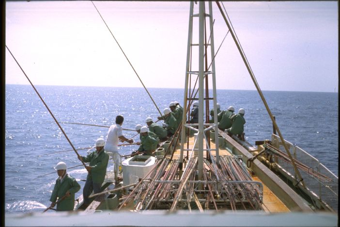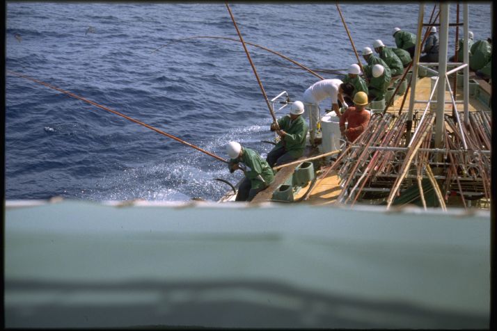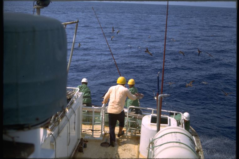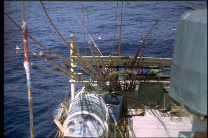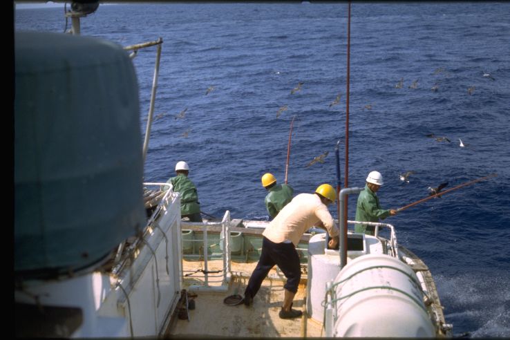 漁師とカツオ鳥