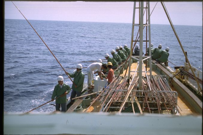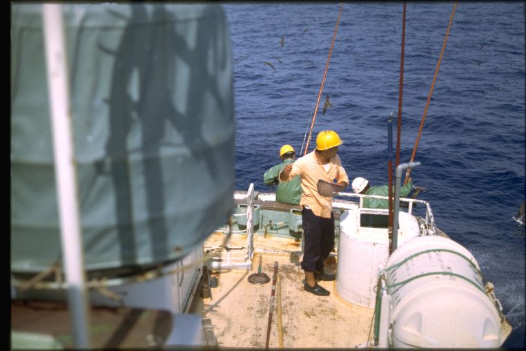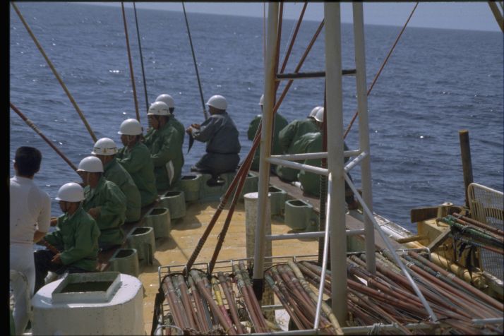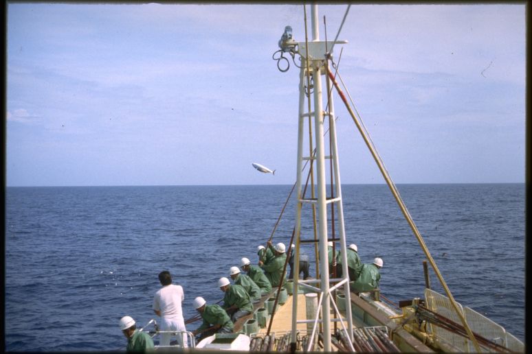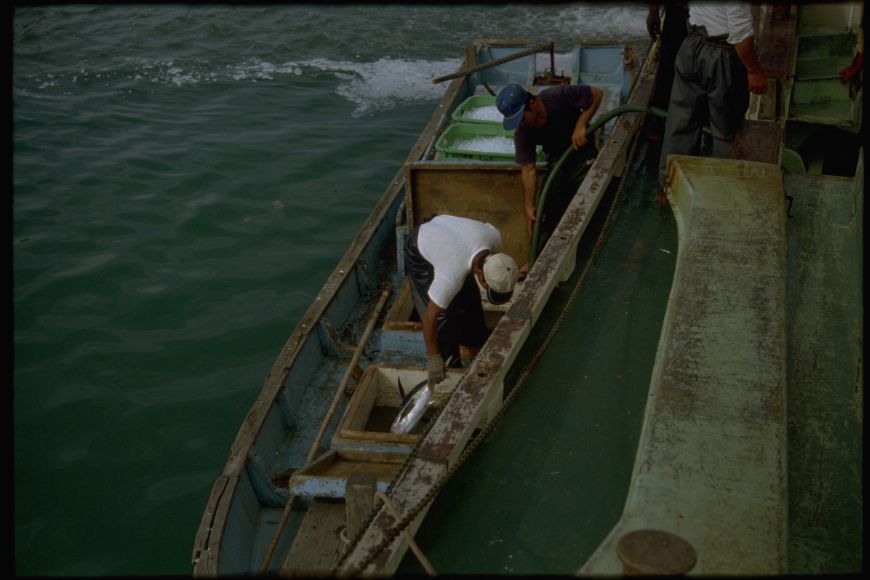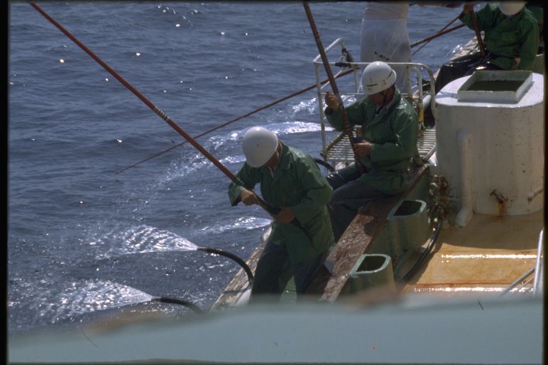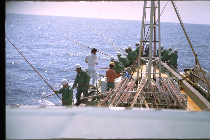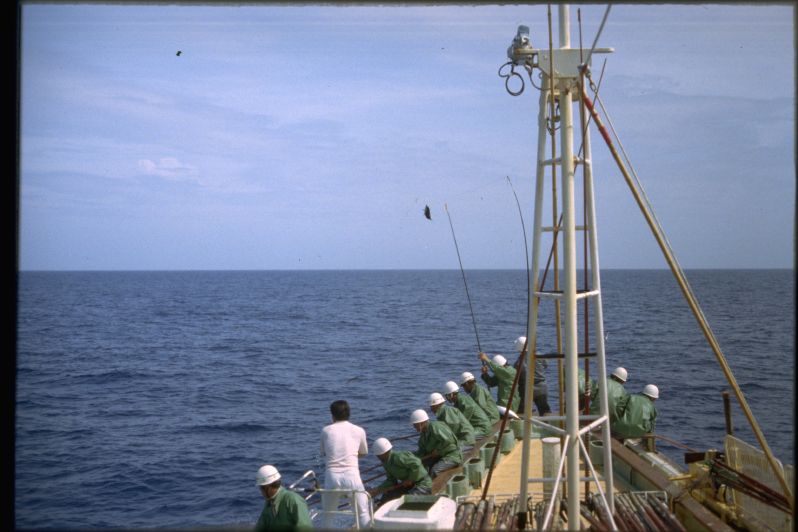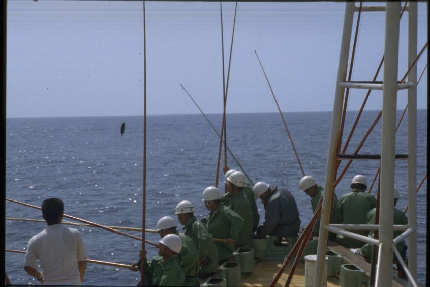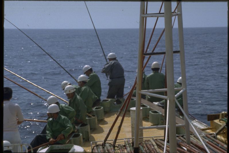 高知県の土佐清水には1955年の夏にはじめていった。河野健二先生を班長とする漁村調査のためである。多田道太郎、樋口謹一、山田稔さんなどがいっしょだった。たしか「コトワザ調査」というのをやった。いまでも京大人文の調査研究報告としてのこっているはずである。そのとき大阪からDC3型の飛行機に乗った記憶がある。その後、縁あって、何回か足をはこんだ。これは1979年夏に訪ねたときの写真である。この時代になると漁師さんたちがヘルメットをかぶっていて、漁船の甲板はなんだか工事現場みたいだった。